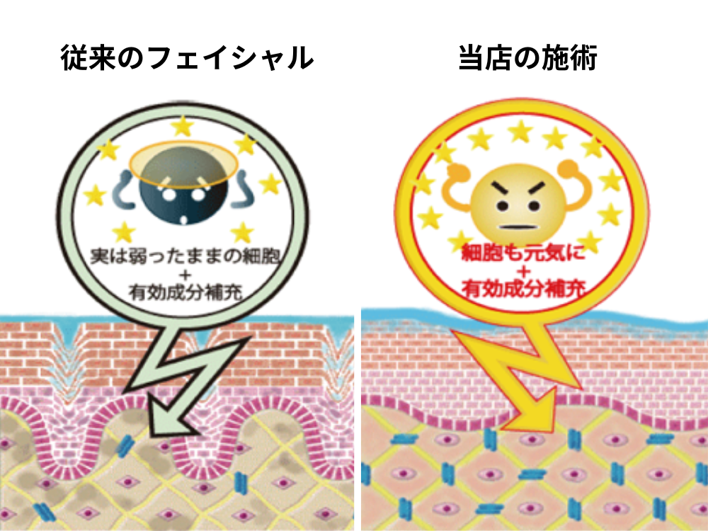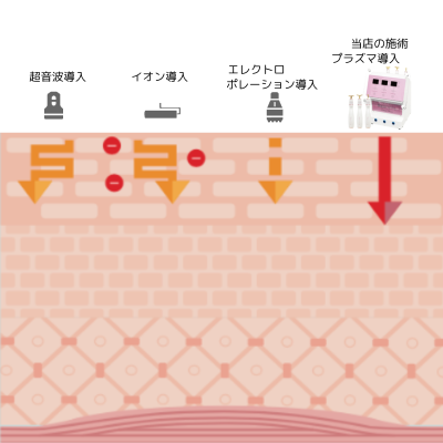 エステティックプラズマを使用することによって、肌深部まで美容成分を導入することができるようになりました。
